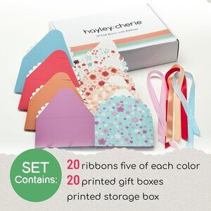 These decorative treat boxes are ideal for small gifts or party favors, featuring colorful floral designs and coordinating ribbons.