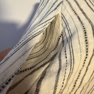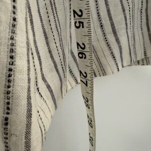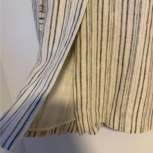 Chic A-line skirt with cream and black stripes. Features a stylish tie waist. Ideal for versatile wear.