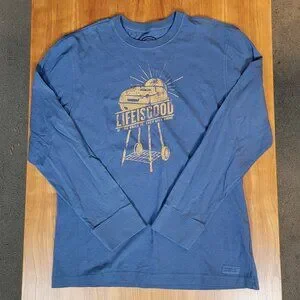 NWT Life Is Good Darkest Blue Men's Crusher L/S Vintage Grill Tee - M