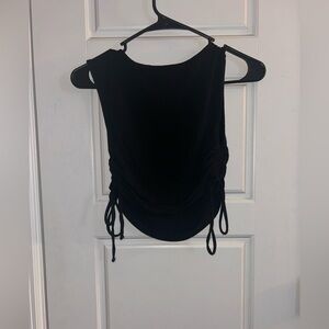 Style: Sleeveless tank top with adjustable side cinch ties/ruching