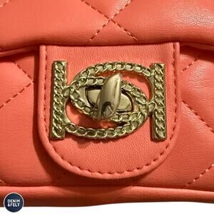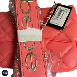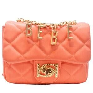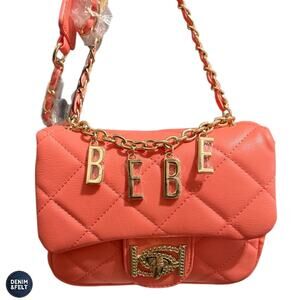 NEW bebe Wyatt Quilted Mini Shoulder Bag Salmon Orange Gold Chain Logo Charm