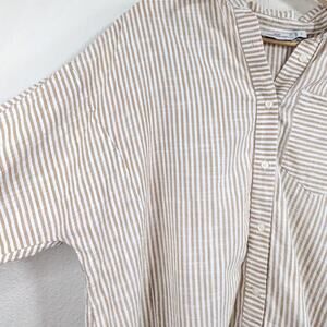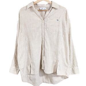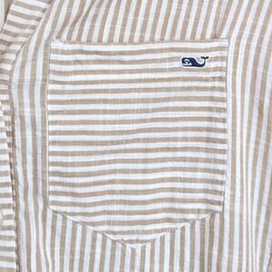 Vineyard Vines Beige Stripe Button Up Shirt Pocket Relaxed Cotton Womens 2