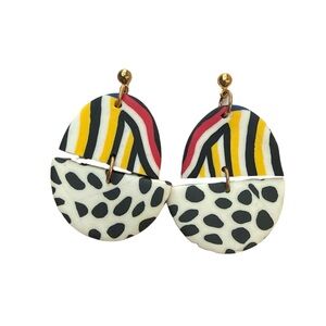 Add a pop of color to your outfit with these abstract earrings. Featuring bold black, white, yellow, and pink hues, they are perfect for any occasion.