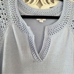 J. Jill Crochet Sleeve Spring Sweater Size XL Cotton Linen Blend Soft Girl Knit