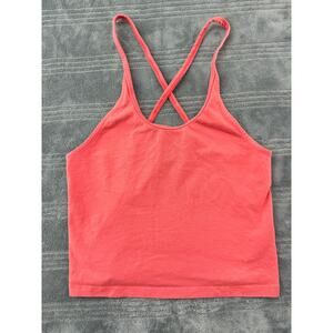 American Eagle, AE, American Eagle Outfitters, Coral, Peach, Rust, Orange, Pink, Tank Top, Cami, Crop Top, Cropped, Bralette, Strappy Back, Criss Cross Back, Fitted, Sleeveless, Scoop Neck, Cotton Blend, Stretchy, Casual, Everyday Wear, Activewear, Athletic, Workout, Yoga, Gym, Summer, Spring, Beach