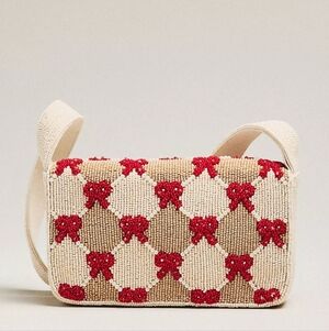 NWT Anthropologie Fiona bow beaded purse. In new condition, never worn. Fully covered glass bead shoulder bag. Cotton lining. One inner slip pocket. Magnetic closure. Imported. Approximate dimensions: 5"H, 8"W. Truly adorable! 🎀