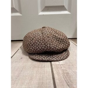 GUESS Y2K Monogram Cap Brown Tan Logo Print Flat Bill Style