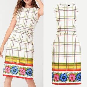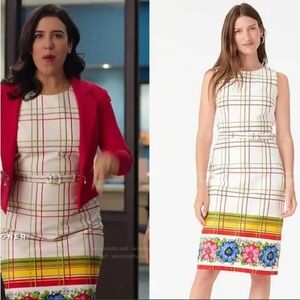 J.Crew dress, J.Crew sheath dress, red floral dress, border print dress, bi stretch cotton dress, sleeveless work dress, women’s size 8 dress, office sheath dress, polished workwear dress, spring event dress, garden party dress, wedding shower guest dress, tea party dress, classic preppy dress, tailored feminine dress, belted sheath dress, lined work dress, professional floral dress, day to night dress, timeless J.Crew style