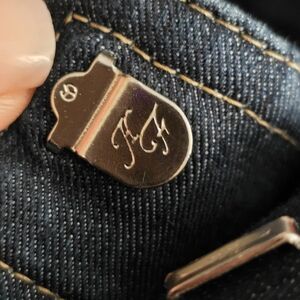 Elevated, tailored denim from St. John, finished with their signature HF (Hand Finished) engraved metal hardware at the waistband — a quiet-luxury detail collectors recognize. These wide-leg pants offer a structured, polished silhouette that bridges designer tailoring and everyday denim. Timeless, refined, and built to last.