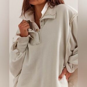 Free People We the Free Camden Henley in the grey opal colorway (creamy color). Slouchy oversized fit with intentional distressing throughout. Very good preloved condition, only worn a handful of times and hung to air dry. Pet free and smoke free home.