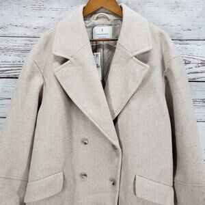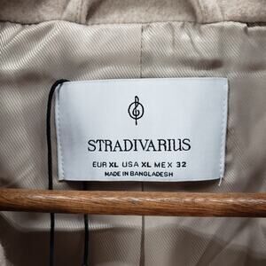Stradivarius Women's Stone Beige Soft Touch Double Breasted Coat Size XL. Shell and Lining 100%Polyester. Approx. measurements pit to pit 23 in. Sleeve length 20.5 in. Coat length 47 in. New with tag in very good condition, no holes or stain.