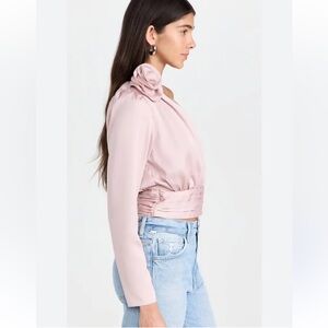 Elegant one-shoulder blouse with floral detail. Soft fabric and stylish design. Perfect for special occasions.