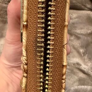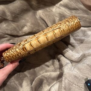 Brahmin Metallic Gold & Tan Embossed Wristlet