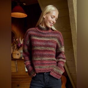 “The Unbounded Sweater is ready for fireside nights and coffee-filled mornings with its roomy sleeves and relaxed fit. Crafted with plush boucle yarn from a warm wool blend, it has a ribbed mock neckline, drop shoulders, and an extended length for that extra cozy factor.”