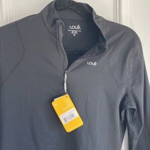 Sleek black long sleeve top. Features a half-zip design. Perfect for casual wear.
