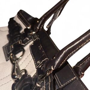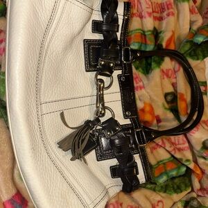 Coach White Pebbled Leather Satchel with Black Trim – Classic Structured Tote