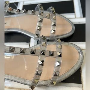 Womens Garavani Glitter Rockstud Gladiator Sandals In Silver