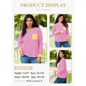 Features: Soft, lightweight, stretchy fabric that feels great against the skin and won’t shrink or fade after washing. Easy to dress up or down with jeans, leggings, or skirts. The trendy striped patchwork design with chest pockets adds a casual yet chic vibe. Ideal for everyday wear, office, or casual outings.