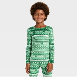 NWT Cat& Jack Green Patterned Kids Pajama Set Size 10