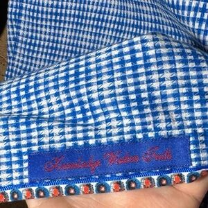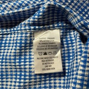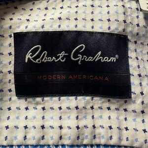 Robert Graham Tailored Fit Long Sleeve Button Up Blue Plaid Shirt XL. Classic checks inspire the textured plaid of a sport shirt made from cotton and spandex, for a bit of stretch. Front button closure, button down collar, long sleeves with button cuffs. Pre-owned great condition.