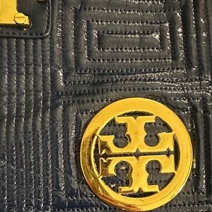 Tory Burch Black Textured Tote with Gold Accents