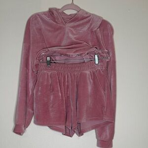 Elegant velour garment in blush pink. Perfect for cozy style.