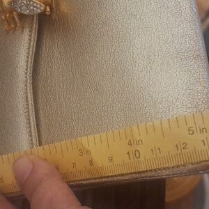 This stylish gold satchel features a distinctive bee detail, adding a unique flair to your ensemble. Perfect for elevating any look.