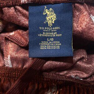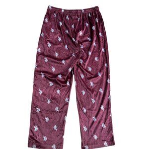 Comfortable U.S. Polo Assn Blue Label men’s Burgundy lounge/sleep pants in size Large. Made from a soft crushed velvet-style fabric with an allover logo print, these pants are perfect for lounging or sleeping in style.