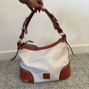 Dooney Bourke Women's Hobo Bag Pearl Ostrich Cream Brown Leather Shoulder Bag