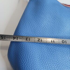 Clean inside, no dust bag. Bag in good condition,light wear in the bottom shown in 3rd picture. No stain no holes no crack. Dooney & Bourke Pebble Leather Blue and Brown Hobo Bag with Leather Trim. Pet and smoke free home.