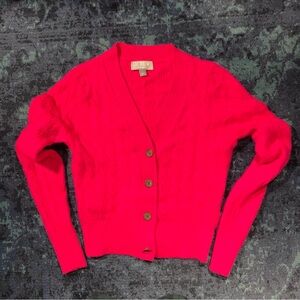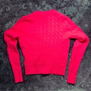 J Crew Cashmere shrunken cable-knit cardigan sweater, Small, Neon Pink, V-neck