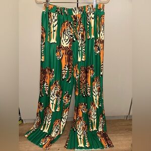 NWT Dressed in Lala The Show Must Go On Green Tiger Print Pleated Set Medium
