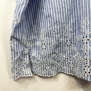 Woman Within Plus Size 26/28 Top 2X Blue White Stripe Embroidered Eyelet 1409