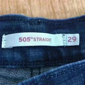 Levi’s 505 straight jeans in a dark wash. Mid rise. Stretchy jean material-not as stretchy as a legging, but not as stiff as denim. EUC no signs of wear. See photos for inseam-approx 29 1/2
