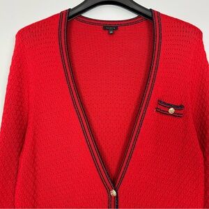 Talbots Wool Blend Long Cardigan Sweater Women’s Size L Metallic Trim Academia