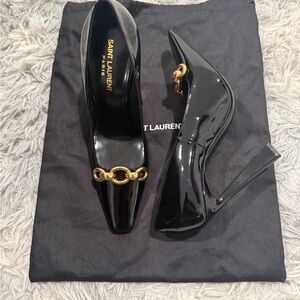 Chic black heels featuring a striking gold chain accent. Ideal for elevating any ensemble.