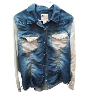 Bill A Bong Womens Denim Long Sleeve Snap Top Western Boho