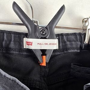 Cute and comfy Levi’s girls pull-on jeggings in a dark charcoal/black wash.