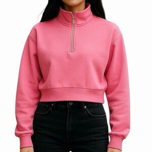 Aritzia Tna Cozy Airy Fleece Long Sleeve Half Zip Crop Sweatshirt Sweater Top