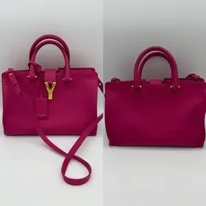 Authentic Yves Saint Laurent pink small cabad tote in smoot calfskin leather