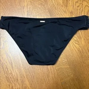 Stylish gray bikini bottoms with ruched sides. Perfect for a chic beach look.
