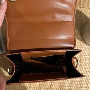 Chic Jacquemus mini bag in tan. Features elegant gold buckle detail. Perfect for elevating any outfit.