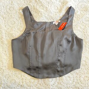 Joe fresh black silk/satin corset top NWT size 8. Made from a silk\satin like material, lightweight with back zipper