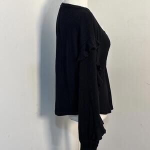 Anthropologie Pilcro Black Ruffled V-Neck Waffle Knit Top Size XS