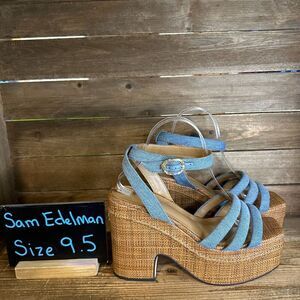 New NIB Womens Sam Edelman Tibby Blue Denim Wedge Heeled Sandals Shoes Size 9.5