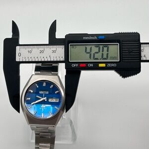Vintage 1975 Seiko 5 Actus SS, automatic 42mm size case, 6.5in size wrist