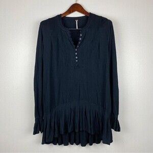 Free People Your Girl Ruffle Tunic Long Sleeve Mini Dress Black Size S