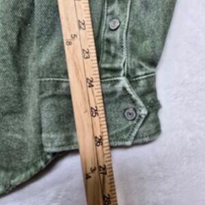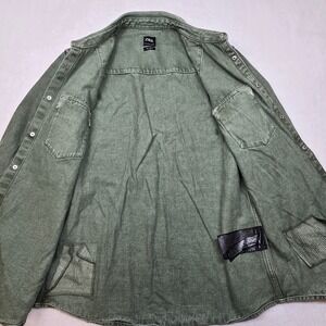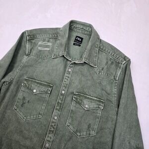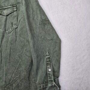 Zara Denim Distressed Overshirt Mens Large Green Relaxed Fit Snap Shirt Jacket