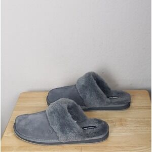 Lands End Women Gray Faux Fur Lined Mule Slippers Comfort Shoes 10B Cozy Winter