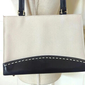 Kate Spade rectangle handbag. White canvas top and black leather bottom and straps.